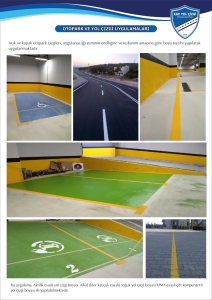 Yol , otopark ve iş güvenlik çizgileri forklift yolları ve fabrika içi yaya yollarının çizimi , çift kompenantlı boya ile hız kesici uygulaması , kasis ve delinatör montajı konusunda bilgi birikim ve tecrübemizle yanınızdayız